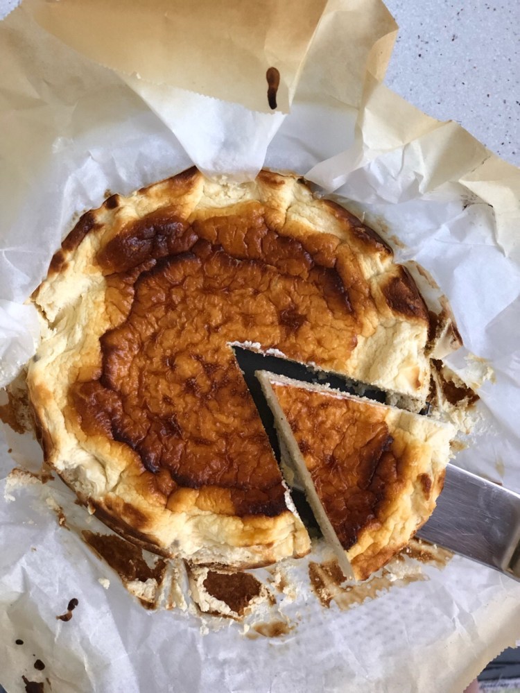 Esta basada en la tarta de queso de La Viña, un restaurante situado en la calle 31 de Agosto de Donostia – San Sebastian. Famoso por sus rutas gastronómicas de pintxos, una de las paradas obligatorias es este restaurante para hacer el pintxo-postre. Nosotros la probamos de primera mano en nuestro viaje en 2015. Y puedo deciros que pese a la fama que tiene y merecida porque buena está, la mía no le tiene nada que envidiar. Sobretodo porque no acabarás con una sobredosis de azúcar.