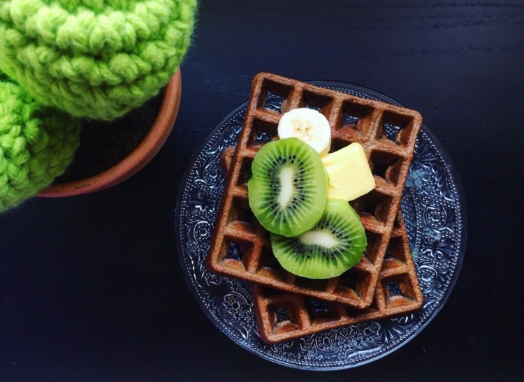 - Precalentamos la gofrera con un poco de aceite de coco o mantequilla. Una vez caliente ya podemos añadir parte de la masa. Al cabo de unos minutos (depende de la potencia de la gofrera) estarán listos.