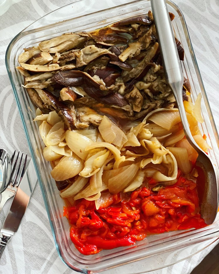 Respecto a combinaciones, escalivada con miel y queso de cabra es un clásico. Con anxoas sobre un paleo pan o sobre la masa de pizza de plátano macho. Como acompañamiento a cualquier tipo de plato. Especialmente me encanta escalivada con bacalao.