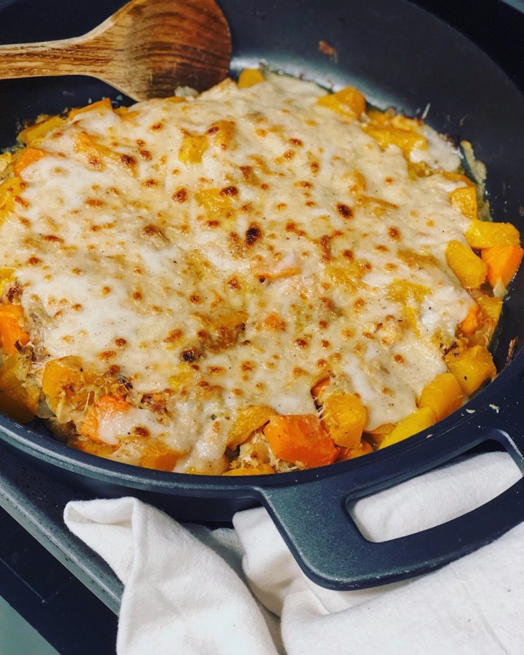 También podéis utilizar calabaza en lugar de calabacín y gratinar con otro tipo de queso como el manchego de oveja.