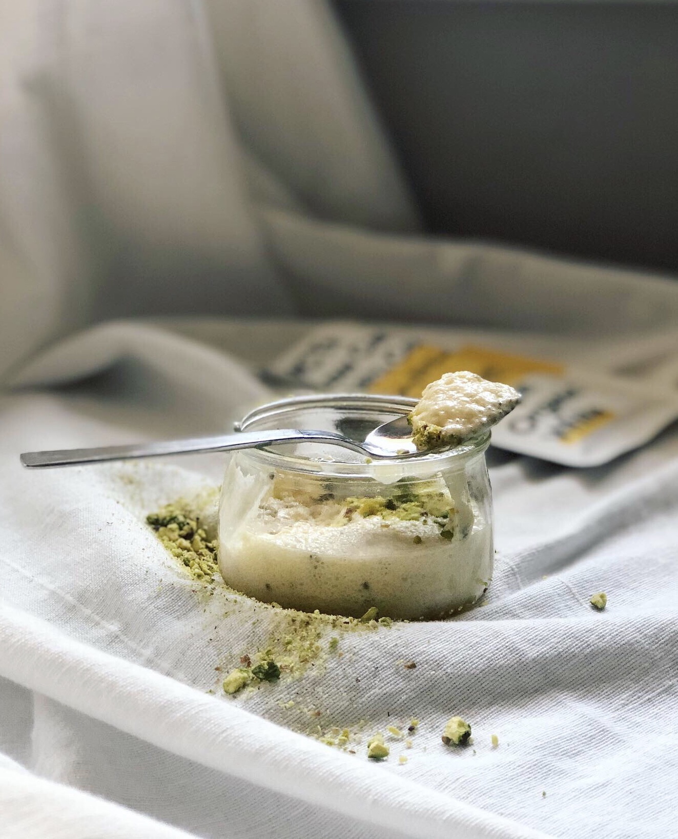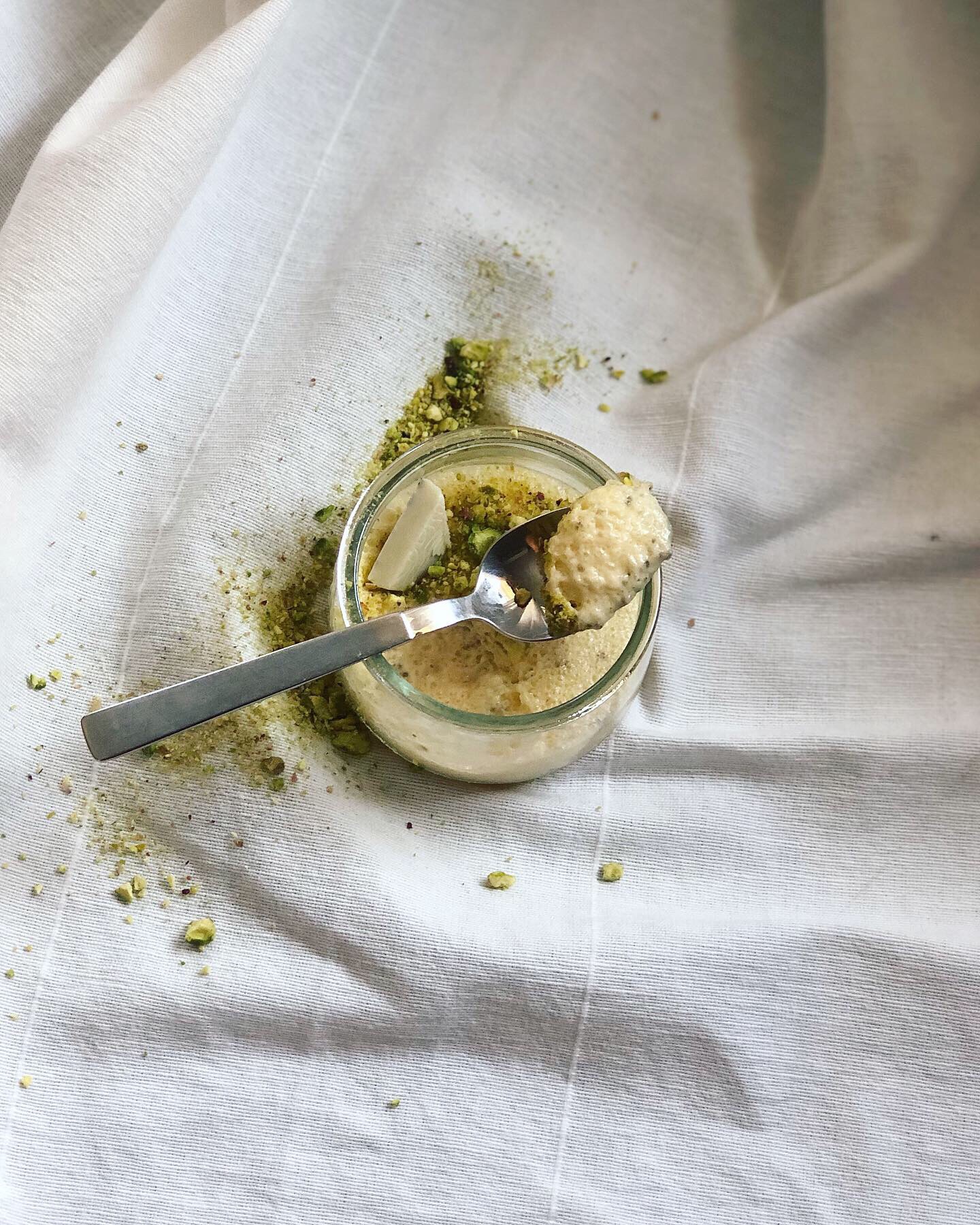 Esta mousse por lo tanto es ligera y esponjosa, gracias a las claras de huevo montadas. Yo la acompañé del fruto seco que queda bien siempre a todo, el pistacho. Pero con unos refrescantes frutos rojos también estará espectacular.