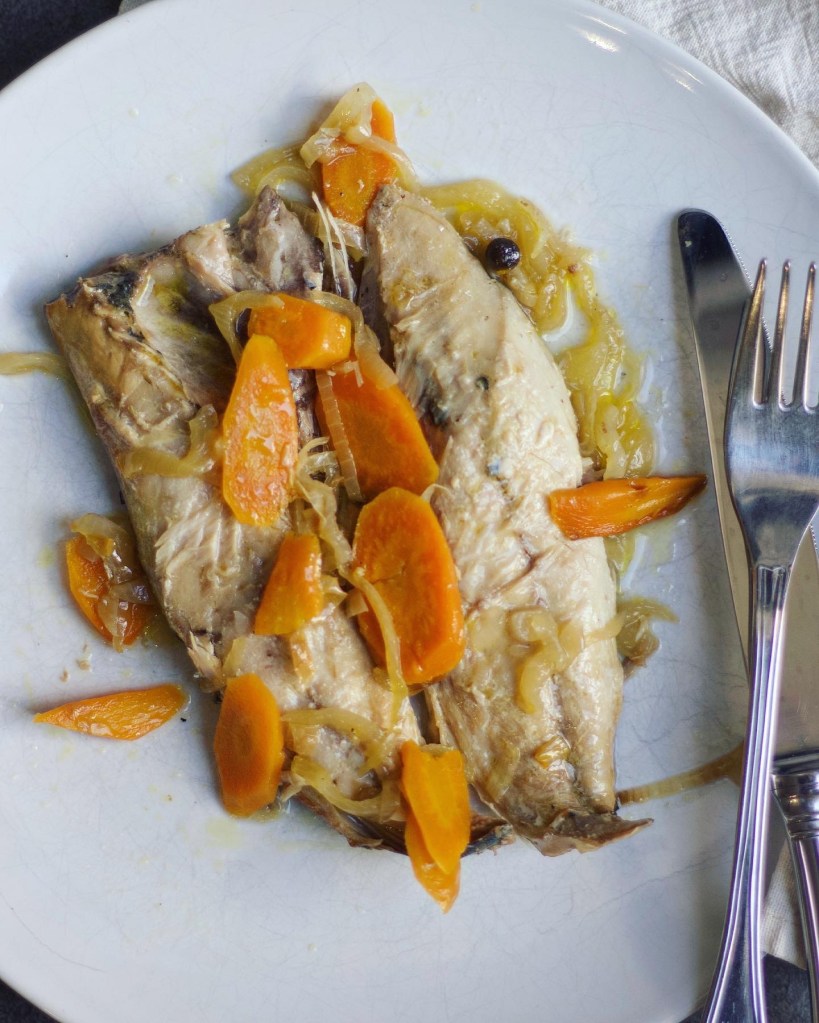 Estas caballas en escabeche quedaron jugosas y sabrosas después de ser cocinadas en CrockPot, con el toque justo de vinagre, ni demasiado ácidas ni tampoco sosas.