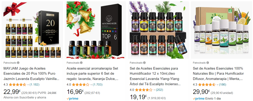 A veces me preguntáis por packs de varios “aceites esenciales” en Amazon, por un precio de 10 o 20€… ¿really? ¿Son realmente aceites esenciales o son fragancias sintéticas? Todos deberíamos saber que las estrategias de marketing son eso, estrategias para atraer al consumidor con etiquetas como: natural, artesanal, orgánico… y la legislación no es lo suficientemente estricta por lo que las empresas pueden poner prácticamente lo que quieran. Es tu trabajo informarte.